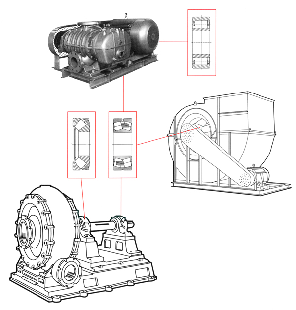 風機行業(yè)應用特點為連續(xù)、高速運行、軸承易發(fā)熱、同時對軸承噪音有較嚴格的要求。針對風機行業(yè)的運行要求,軸承采用特殊設計,開發(fā)出了風機專用軸承系列。既滿足了風機行業(yè)對軸承的噪音要求,同時也很大地提高了軸承在風機上的使用壽命。