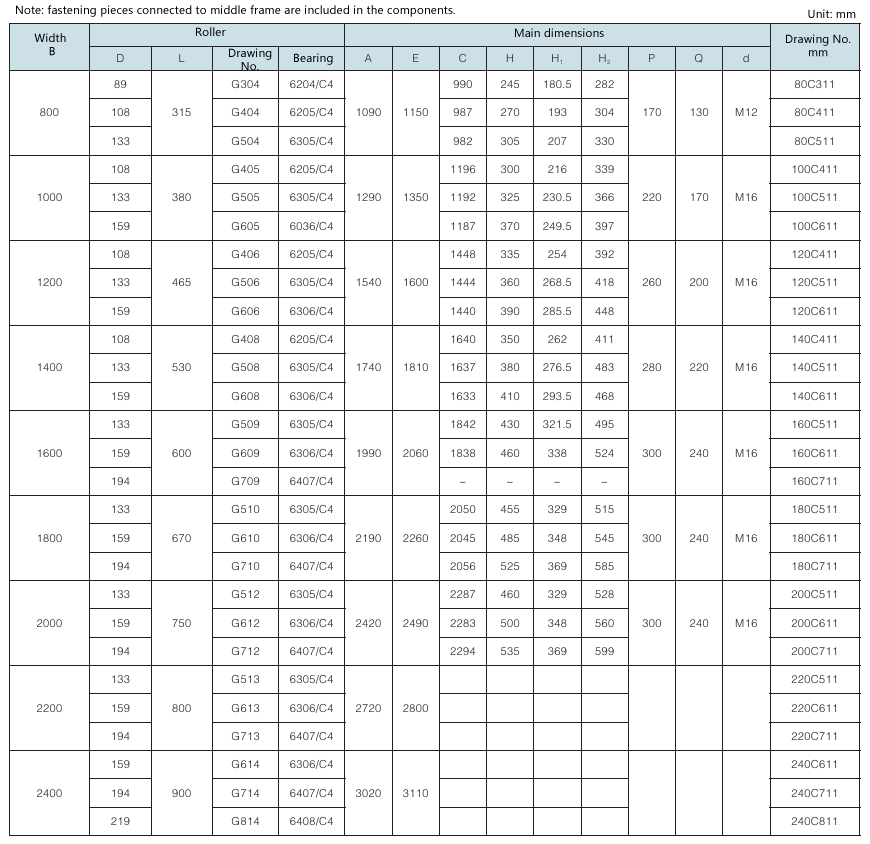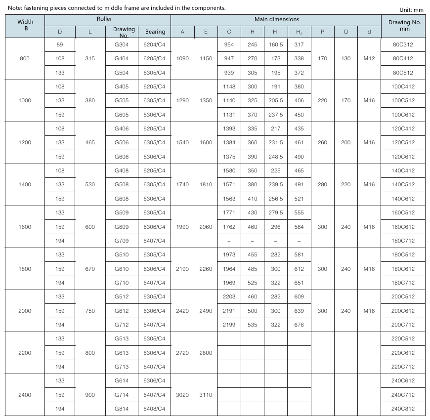 Requirement for drum surface: drawing No. with “G” as postfix refers to smooth face drum; drawing No. without “G” as postfix refers to rubber face drum.